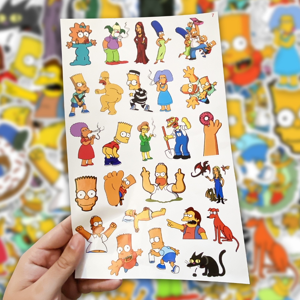Kit Cartela 50 Adesivos Variados Homer Bart Marge Lisa Maggie Caderno Notebook Carro Moto Capacete