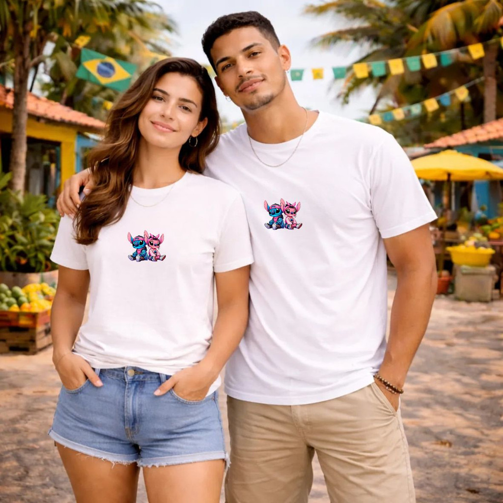 Kit Casal 2 Camisetas Estampado "Stitch e Angel" Unissex 100% Algodão