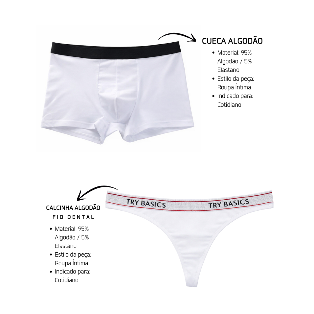 | Kit Casal Calcinha e Cueca 100% Algodão Namorados Personalização To... este produto | R$ 49,90 | — | 5.0/5 | 5 |