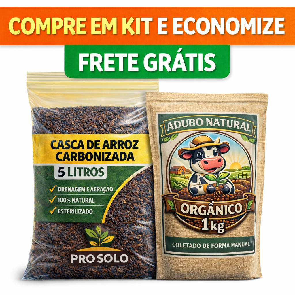 ? KIT COMPLETO PARA PLANTAS ? 5L Casca de Arroz Carbonizada + 1KG Adubo Orgânico ? Pare de perder plantas por excesso de água! ✔ Melhor drenagem✔ Raízes mais fortes✔ Crescimento saudável✔ Produto 100% natural ? Ideal para:Suculentas • Cactos • Rosa do Deserto • Hortas • mudas •frutiferas •flores ? Mais economia comprando o kit⚠️ Estoque limitado ? Suas plantas mais bonitas e saudáveis a partir de hoje.