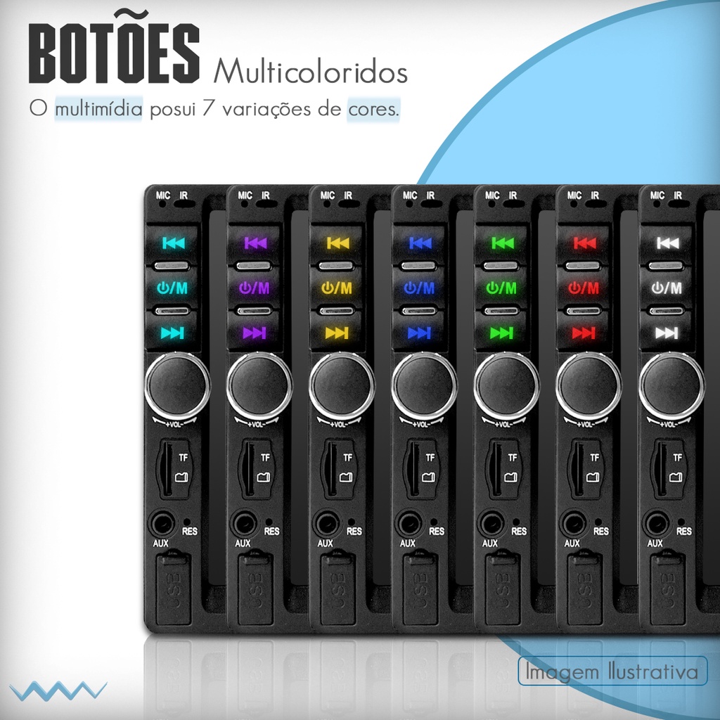 KIT CENTRAL MULTIMIDIA MP5 - ACOMPANHA MOLDURA E CAMERA DE RÉ!! • Especificações Técnicas: - Tela de 7 Polegadas Touch Screen - Com espaço para cartão SD e porta USB 2.0 - Formato de vídeo (Full HD) 1080p. - Suporta os formatos de reprodução de áudio: MP3/WMA/WAV/FLAC/OGG/APE. - Suporta os formatos de reprodução de vídeo: RM/RMVB/DVD(VOB)/VCD(DAT)/DIVX/XVID/MP4/H264/FLV/3GP/AVI/ASF etc. - Amplificador MOSFET: Potência máxima de saída 50 watts x4 - FM: 84.5MHz~108.00MHz - Possui controle remoto - Botão desliga com função de armazenamento automático de memória em modo rádio ou SD/USB - Função relógio - Função Mudo - Função Bluetooth - Função baixo e aguda - Função auxiliar - Função Câmera de Ré - Função entrada de vídeo • Entradas e Saídas do Multimídia - Entrada Auxiliar - Entrada de Video - Entrada de Camera - Entrada para Antena - Saída de Audio - Saída de Video - Saída de Video 1 - Saída de Vídeo 2 • Conteúdos inclusos: - 1 Aparelho Multimídia - 1 Cabo Multimídia padrão ISO - 1 Controle Remoto - 1 Camera de Ré e Cabos de Instalação - 1 Moldura Específica e Suportes - 1 Cabo de Antena (para instalação sem cortes do fio original do carro) - 1 Cabo Macho Específico deo Veículo (para instalação sem cortes do fio original do carro) - 1 Manual •OBS: Em caso de falta de estoque deste fabricante, enviaremos outro multimídia com a mesma qualidade ou superior, não ocasionando qualquer problema ao comprador. •Perguntas frequentes: 1-Este aparelho faz espelhamento para IOs (Iphone)? Sim, espelha TODOS os modelos de Iphone até Iphone 13 Pro MAX. Para espelhar basta clicar na opção P-lik e plugar o cabo no celular. 2-Este aparelho faz espelhamento para Xiomi, Asus e Huawei? Sim, Espelha TODOS os aparelho com sistema Android. Para espelhar basta clicar na opção P-lik e plugar o cabo no celular. 3-O espelhamento é via Wi-fi? Não, via cabo. Pode ser usado o próprio carregador de celular, com a ponta que tem o USB. 4-Qual a resolução do aparelho? Full HD, 1080p. Recomendamos que a instalação seja feita por um profissional, não nos responsabilizamos pelo mal uso do produto.