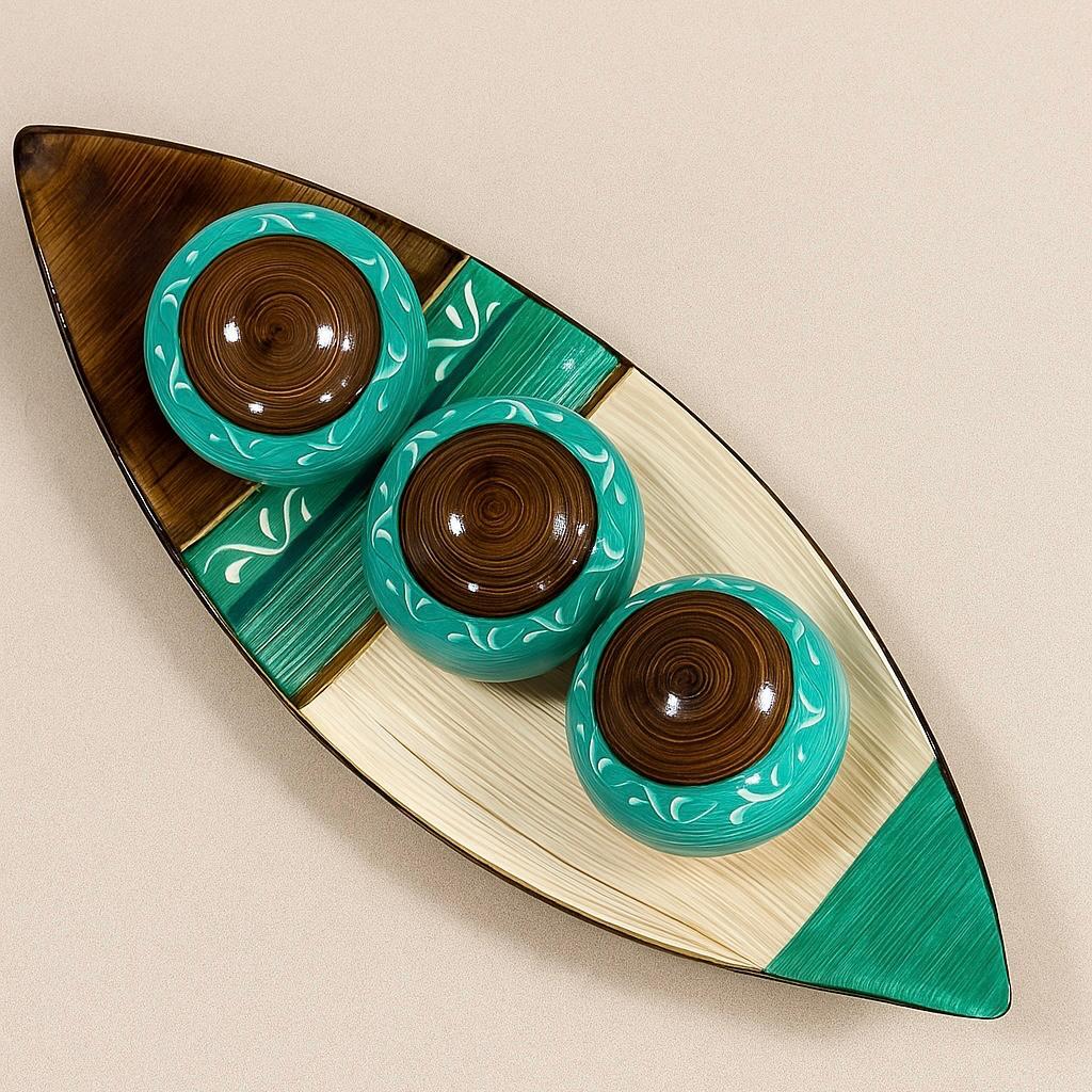 Kit Centro de Mesa com 3 Bolas Barca Prato Decorativo Cerâmica Enfeite de Sala - Decoração Casa