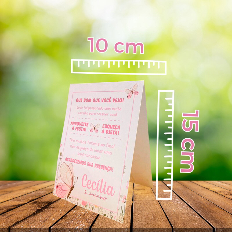 Kit Centro de mesa + Plaquinha de mesa JARDIM DAS BORBOLETAS ROSA ENCANTADO Personalizado