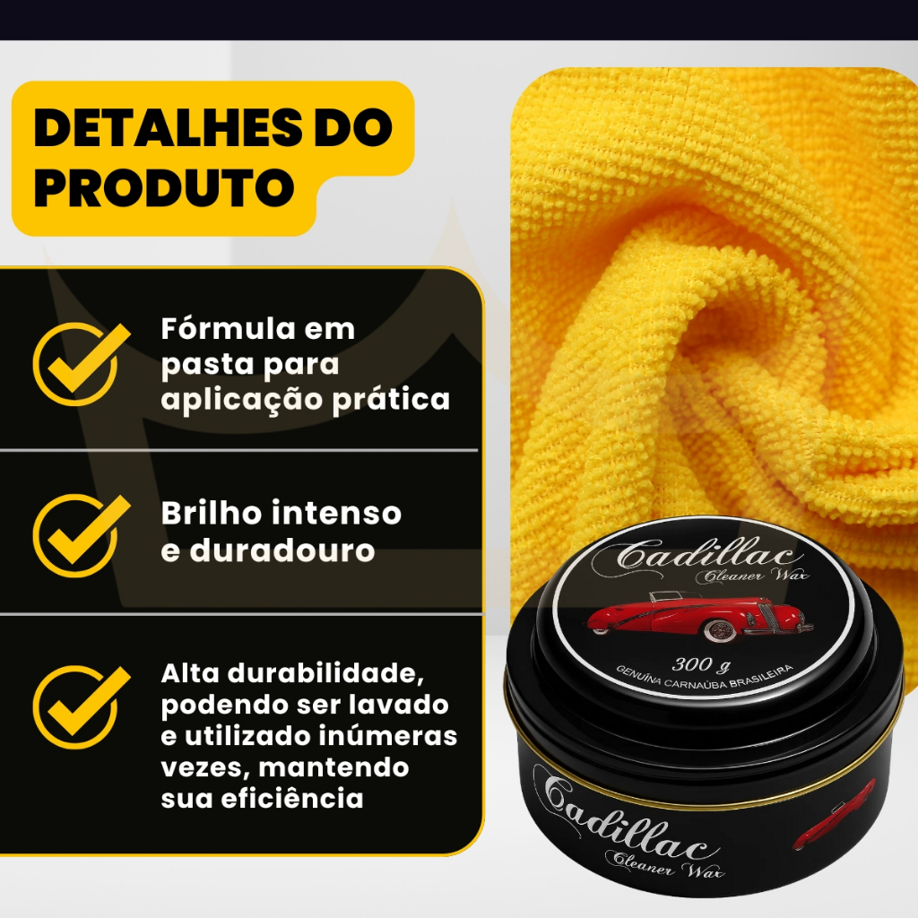 Kit Cera Cleaner Carnaúba 300g e Pano Microfibra 40cmx60cm Profissional Cadillac