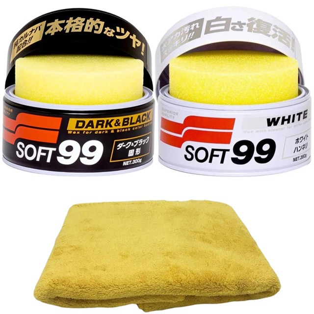 Kit Cera Soft 99 White Cleaner e Dark Black com Toalha Microfibra Automotiva Estética