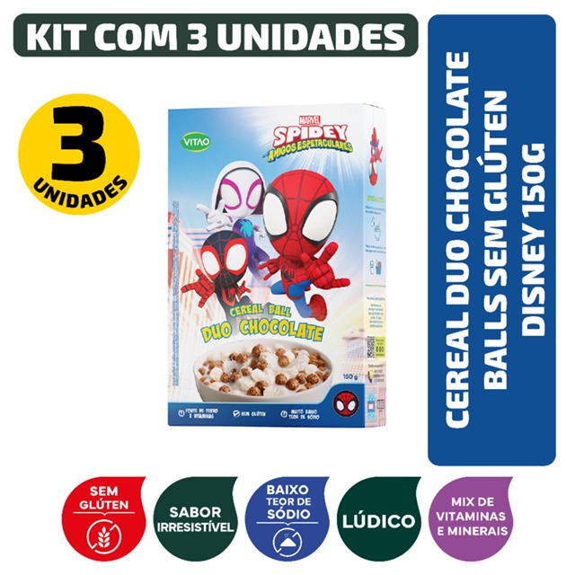| Kit Cereal Duo Chocolate Balls Sem Glúten Disney 150G - 3 Unidades este produto | R$ 50,31 | 10% | 5.0/5 | 4 |