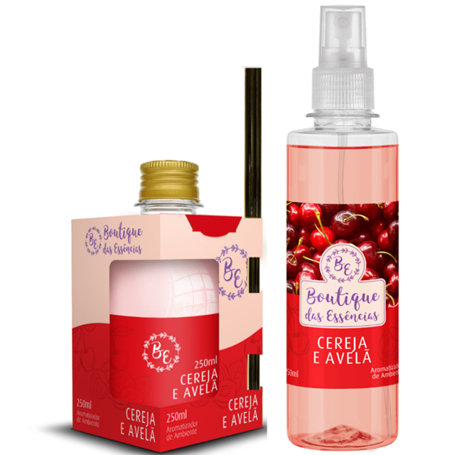 KIT CEREJA E AVELÃ - Aromatizador de Ambiente 250ml + Spray 250ml