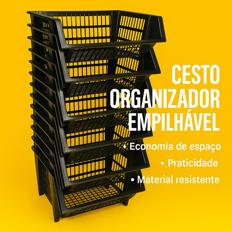 Kit Cesto Cestao Empilhavel 2/4/6 Preto Expositor Reforçado Organizador Estoque Dispensa Loja 20x44c