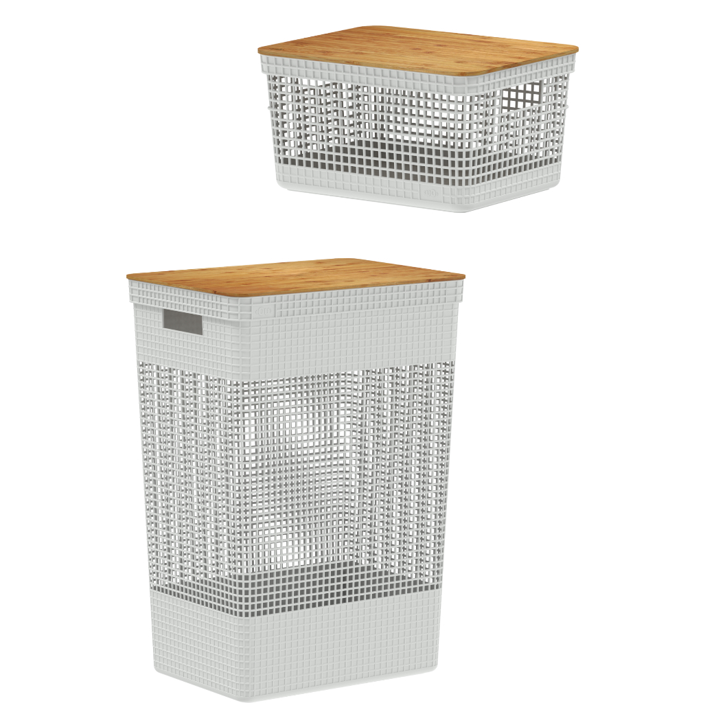 KIT CESTO DE ROUPAS 49 LITROS +CESTO ORGANIZADOR 8 LITROS COM TAMPA DE BAMBU OU
