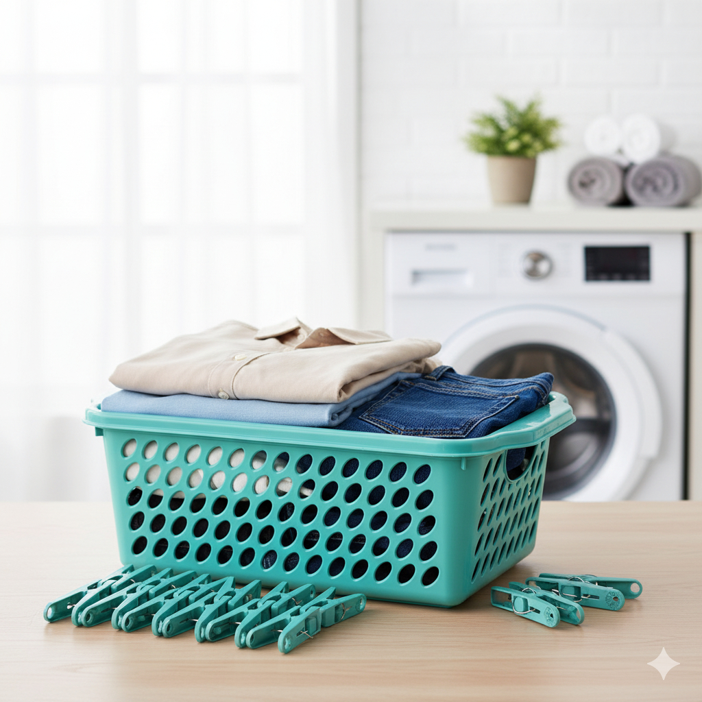 Kit Cesto Organizador Espaçoso com 24/48/60/72/96 Pregadores Reforçados Multiuso Para Armazenar e Organizar
