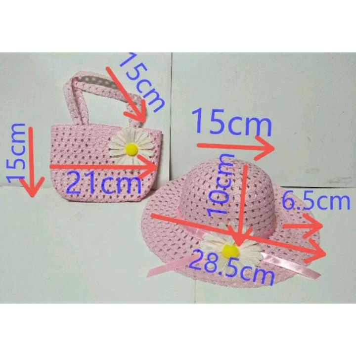 Descrição: Chapéu flexível para garantir que o chapeuzinho fique na cabeça de sua princesa. Bolsinha com 21 cm de largura e 10de comprimento. Alcinhas com 15cm O encaixe da cabeça possui 48cm até 52cm de circunferência Para as meninas arrasarem no verão. Indicado para crianças de 2 a 6 anos. obs. por favor perguntar cores disponíveis por que trabalhamos com mais cores