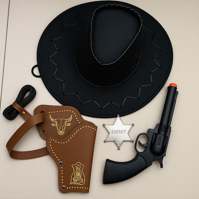 Kit Chapéu Cowboy Country Coldre Adulto Infantil Preto Marrom Xerife Festa Carnaval Cosplay Fantasia