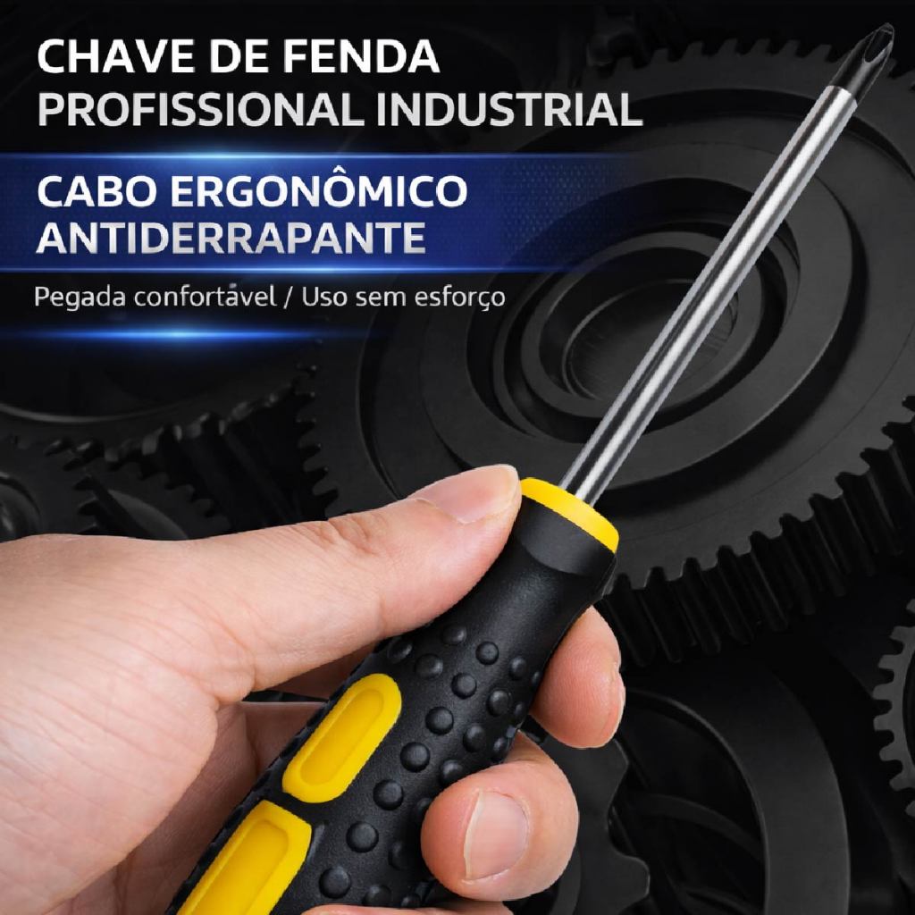 Jogo de Chaves Fenda e Philips 4 Peças com Cabo Emborrachado 🔧 Kit básico que resolve. Simples, resistente e indispensável em qualquer caixa de ferramentas. Destaques • 🔩 4 peças essenciais (fenda e Philips) • 🧲 Pontas magnetizadas – facilita o uso • 💪 Aço Cromo Vanádio (CRV) – alta durabilidade • ✋ Cabo emborrachado – mais conforto e firmeza • 🛠️ Ideal para uso doméstico e profissional Medidas do Kit • Fenda: 5x75mm • Fenda: 6x100mm • Philips: 5x75mm • Philips: 6x100mm Especificações • Material: Aço Cromo Vanádio • Acabamento: Niquelado (resistente à corrosão) • Cabo: Polipropileno com borracha termoplástica • Cor: Vermelho/Amarelo e Preto Resumo honesto: kit pequeno, mas resolve muito. Ferramenta clássica — pegou, usou, funcionou. 🔧😏