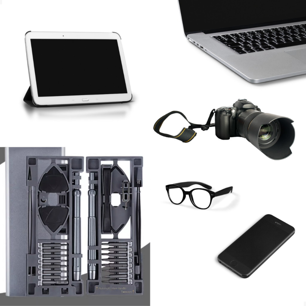Kit de chaves de precisão 24 em 1 indicado para manutenção eletrônica profissional. Ideal para abrir celulares, realizar troca de bateria, troca de tela e desmontagem de dispositivos com parafusos pequenos e delicados, garantindo encaixe correto e maior controle no manuseio. O cabo possui estrutura metálica, oferecendo firmeza e durabilidade para uso contínuo em bancada técnica. As pontas são fabricadas em aço, adequadas para serviços de precisão. O sistema de fixação magnética facilita a troca das pontas e ajuda a manter os parafusos presos durante o trabalho. Acompanha estojo rígido em alumínio, compacto e organizado, ideal para transporte e armazenamento sem risco de perda das pontas. Indicado para: Abrir celular para manutenção Troca de bateria e tela de iPhone Manutenção de notebooks, PCs e tablets Eletrônicos de precisão em geral Uso comum em assistência técnica e bancadas profissionais. Especificações técnicas Quantidade de peças: 24 Material do cabo: metal Material das pontas: aço Fixação das pontas: magnética Estojo: alumínio Tipo: kit de chaves de precisão