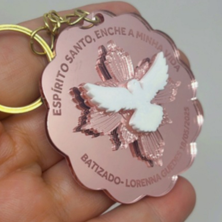 Kit Chaveiro Espírito Santo Personalizado – Lembrança Especial para Batizado!