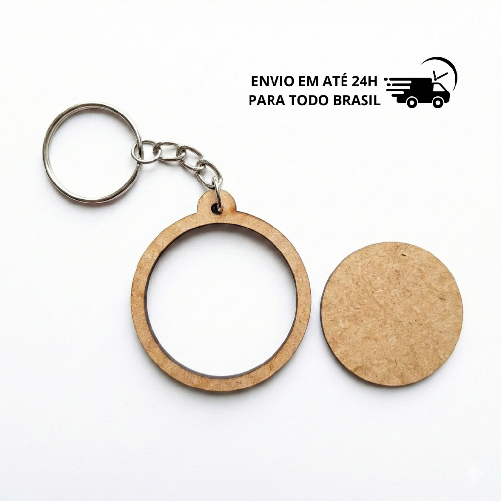 Kit Chaveiro Mini Bastidor Redondo com Tampo Mdf Artesanato Kit 10/25/50/100 Unidades