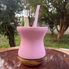 Kit Chimarrão: Cuia Bicolor de Madeira Fosca + Bomba em Inox Colorida Diversas Cores
