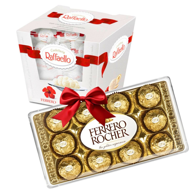 A combinação perfeita de sabores premium para os amantes de chocolates! Este kit irresistível reúne os famosos Bombons Ferrero Rocher (12 unidades) e os sofisticados Bombons Raffaello (15 unidades), proporcionando uma experiência de sabores inconfundíveis. Ideal para presentear, compartilhar ou simplesmente desfrutar em momentos especiais, esse combo é perfeito para quem aprecia o melhor da Ferrero Rocher. Itens inclusos no kit: - Ferrero Rocher (12 unidades): Avelã inteira envolta em chocolate ao leite, wafer crocante e pedaços de avelã. - Raffaello (15 unidades): Creme de amêndoa envolto em coco e uma delicada casquinha crocante. Versatilidade: perfeito para festas, presentes ou como um mimo para si. Embalagem elegante: Uma apresentação sofisticada que agrada a todos os gostos. Sabor premium: ambos os bombons são feitos com ingredientes de alta qualidade, garantindo uma experiência saborosa e refinada. Somos uma loja especializada em artigos de festa, confeitaria, embalagens e atacado em doces com lojas físicas no estado de São Paulo, desde 2002. Imagens meramente ilustrativas, de acordo com nossos fornecedores que nos fornecem. Todas as Informações divulgadas são de responsabilidade do fabricante/fornecedor.