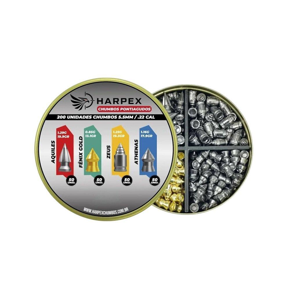 Kit Chumbinho Teste Harpex Combo Pontiagudos - Aquiles, Fênix Gold, Zeus, Athenas 5.5mm (.22) - 200un Penetração, impacto e precisão para atiradores exigentes O Combo Pack Pontiagudos Harpex 5,5mm foi desenvolvido para quem busca alto poder de perfuração, excelente precisão e desempenho consistente em diferentes cenários de tiro. Com 4 modelos exclusivos no mesmo kit, este combo oferece máxima versatilidade para tiro esportivo, treinos, controle de pragas e caça legalizada. Produzidos no Brasil, com liga de chumbo refinada e acabamento de alto padrão, os chumbinhos Harpex garantem trajetória estável, impacto eficiente e ótima transferência de energia, sendo compatíveis com carabinas, pistolas PCP e Gás Ram potentes. Por que escolher o Combo Pontiagudos Harpex? ✔ 4 modelos distintos, cada um projetado para uma aplicação específica. ✔ Design aerodinâmico, garantindo estabilidade em tiros de curta, média e longa distância. ✔ Alta energia cinética, com excelente poder de perfuração em alvos resistentes. ✔ Combo completo, com 200 unidades, oferecendo ótimo custo-benefício. Modelos Inclusos: - Zeus 5,5mm (50 unidades) - Ponta pontiaguda e peso de 1,42 g, ideal para perfuração de alvos mais resistentes. - (21.9 grains) - Aquiles 5,5mm (50 unidades) - Design alongado tipo flecha, com 1,29 g, indicado para penetração profunda e máxima estabilidade em voo. - (19.9 grains) - Athenas 5,5mm (50 unidades) - Ponta pontiaguda com aerodinâmica refinada, leve e extremamente precisa, ideal para tiros de curta a longa distância. - Peso: 1,16 g (17.9 grains) - Fênix Gold 5,5mm (50 unidades) - Acabamento dourado exclusivo, ponta pontiaguda e excelente estabilidade, proporcionando disparos rápidos e precisos. - Peso: 0,85 g (12.3 grains) Características Técnicas: - Marca: Harpex - Calibre: 5,5mm (.22) - Material: Liga de chumbo refinada - Tipo de ponta: Pontiaguda (variações em flecha, aerodinâmica e acabamento dourado) - Compatibilidade: Carabinas e pistolas PCP e Gás Ram 5,5mm potentes - Finalidade: Perfuração, impacto, precisão e caça legalizada - Quantidade total: 200 unidades - Origem: Fabricado no Brasil Itens Inclusos: - 50x Chumbinho Harpex Zeus 5,5mm - 50x Chumbinho Harpex Aquiles 5,5mm - 50x Chumbinho Harpex Athenas 5,5mm - 50x Chumbinho Harpex Fênix Gold 5,5mm - 1x Nota fiscal Harpex Combo Pack Pontiagudos 5,5mm: escolha profissional para quem exige perfuração, precisão e performance superior em cada disparo.