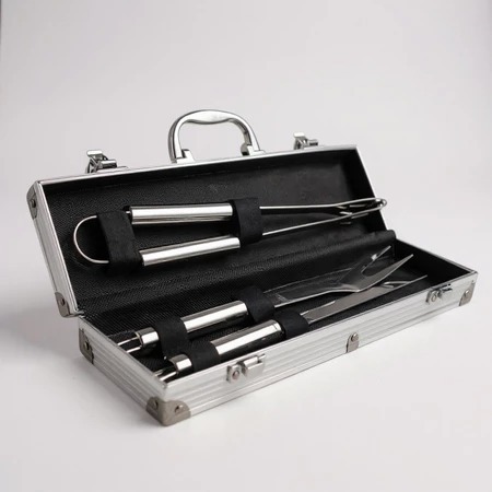 A maleta também pode ser personalizada com um NOME de até 10 caracteres na fonte Baskerville Old Face, tornando o presente ainda mais especial. OBS: Para mandar o NOME e a FONTE (nas fotos do anuncio) é só após a compra. Nos enviar por mensagem pela pagina Minhas compras no campo FALAR COM VENDEDOR. Obs: não gravamos imagens nem logo. Prepare momentos especiais com o nosso sofisticado Kit Churrasco com 3 Peças, perfeito para os amantes de churrasco e para quem busca praticidade e qualidade no preparo de carnes. Composto por uma faca de 7 polegadas (32,5 x 2,5 cm), um garfo (34 x 3,2 cm) e uma pinça (34 x 4,3 cm), o conjunto vem em uma elegante maleta de alumínio, garantindo organização e um toque de exclusividade. É uma excelente opção de presente para pais, maridos ou apaixonados por churrasco. Itens inclusos e medidas: - Faca: 32,5 cm (C) x 2,5 cm (L) | Lâmina de 16 cm (6 polegadas). - Garfo: 34 cm (C) x 3,2 cm (L). - Pegador (Pinça): 34 cm (C) x 4,3 cm (L). Plaquinha para personalização na maleta: 4 cm (C) x 5 cm (L). Leve este kit indispensável para churrascos e impressione em ocasiões especiais. É perfeito também para datas comemorativas! Obs: Após a compra, entre em contato conosco pelo chat para informar o nome que deve ser personalizado.