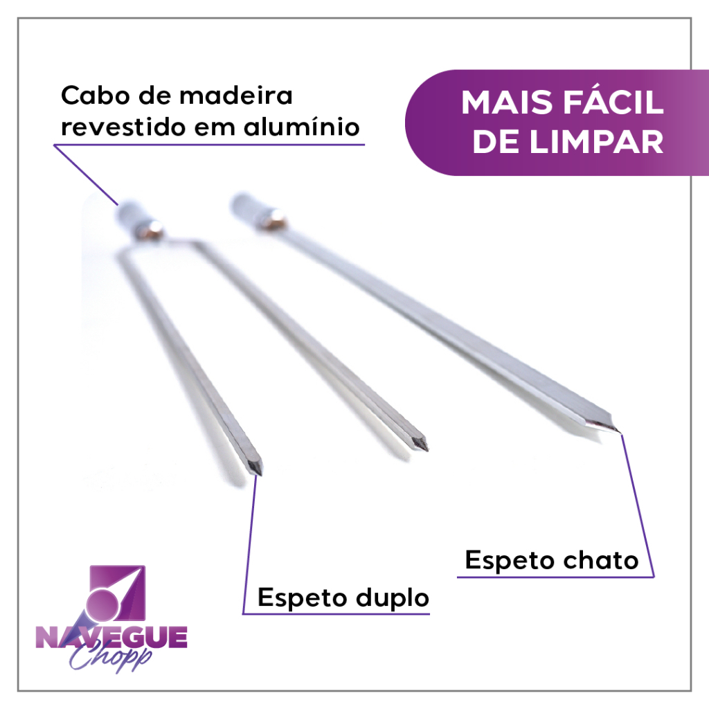 Desfrute de um churrasco de qualidade com os Espetos de Alumínio para Churrasco Churrasqueira. Inclui: 5 Espetos Simples Chatos (5/8) + 5 Espetos Duplos. Feitos de alumínio, os espetos são resistentes à ferrugem e fáceis de limpar. Torne seu churrasco mais prático e eficiente. Dimensões: Lâmina (Personalizável) + 14 cm de cabo. Nada supera a qualidade de um espeto premium para um bom churrasco. Garantia do vendedor: 12 meses.