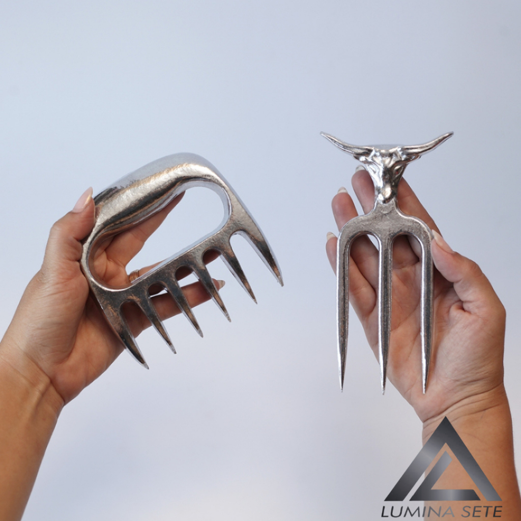 kit churrasco garfo tridente e garra de urso para churrasco cortar e desfia carnes