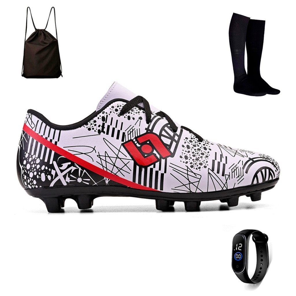 Domine o campo com nossas chuteiras infantis sintéticas de última geração! Projetadas especialmente para os pequenos jogadores, nossas chuteiras oferecem desempenho máximo em terrenos naturais, proporcionando um ajuste perfeito e durabilidade excepcional. Deixe seu filho brilhar em campo com agilidade e precisão, enquanto desfruta do conforto incomparável que só nossas chuteiras podem oferecer. Porque o futebol é mais do que marcar gols, é sobre a paixão em cada chute na bola. Por isso, seus filhos merecem calçados que acompanhem cada passo. Com as chuteiras Light, eles poderão aproveitar ao máximo suas habilidades e se divertir ao máximo no campo. Conteúdo do kit: 1 Par de chuteira campo infantil 1 Relógio digital infantil (cor sortida) 1 Mochila bag 1 Meião infantil (cor sortida) Características do Produto: - Estilo: Campo - Material exterior: Sintético - Material da sola: PVC - Tipo de ajuste: Cadarço Dicas para a Escolha do Tamanho: - A medida da numeração é baseada no tamanho aproximado da palmilha. Sempre compre com 0,5 cm de folga para maior segurança. - Evite problemas com trocas por tamanho, decida com atenção a numeração desejada seguindo a tabela abaixo! Tabela de Medidas: - 26 - 17,5 cm - 27 - 18,0 cm - 28 - 19,5 cm - 29 - 20,0 cm - 30 - 20,5 cm - 31 - 21,0 cm - 32 - 21,5 cm - 33 - 22,5 cm - 34 - 23,0 cm - 35 - 23,5 cm - 36 - 24,0 cm Instruções de Lavagem da Chuteira: - Não lavar os calçados em máquina de lavar roupas, usar apenas pano úmido. - A secagem deve ser realizada na sombra. Garantia contra defeitos de fabricação!
