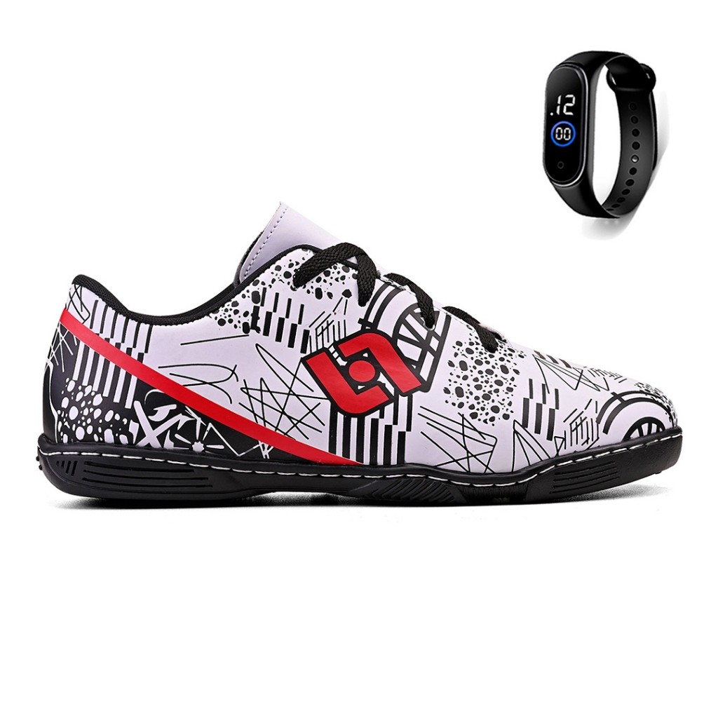 Kit Chuteira Infantil Futsal Futebol Salao Quadra Costurada Light + Relogio