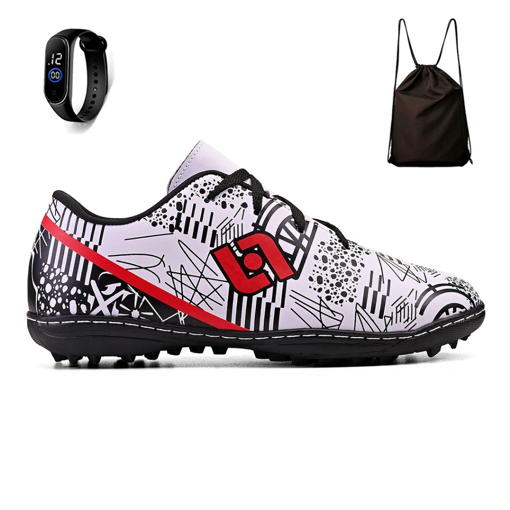 Destaque-se nos gramados sintéticos com nossa chuteira infantil de alta tecnologia! Desenvolvida para proporcionar máximo desempenho em campos society, nossa chuteira infantil combina estilo e funcionalidade em um design moderno e inovador. Com ajuste perfeito e durabilidade excepcional, seu filho estará pronto para dominar o jogo com confiança e estilo. Não perca tempo, garanta já a chuteira sintética para o seu pequeno e eleve sua performance a um novo nível! Porque o futebol não é apenas sobre fazer gols, mas sobre a paixão em cada chute na bola. É por isso que seus filhos precisam de calçados que acompanhem cada passo. Com as chuteiras Light, eles poderão viver a incrível experiência de aproveitar todas as suas habilidades e atingir seus limites no campo. Conteúdo do kit: 1 Par de chuteira society infantil 1 Relógio digital infantil (cor sortida) 1 Mochila bag Características do Produto: - Estilo: Society - Material exterior: Sintético - Material da sola: Borracha - Tipo de ajuste: Cadarço Dicas para a Escolha do Tamanho: - A medida da numeração é baseada no tamanho aproximado da palmilha. Sempre compre com 0,5 cm de folga para maior segurança. - Evite problemas com trocas por tamanho, decida com atenção a numeração desejada seguindo a tabela abaixo! Tabela de Medidas: - 26 - 17,5 cm - 27 - 18,0 cm - 28 - 19,5 cm - 29 - 20,0 cm - 30 - 20,5 cm - 31 - 21,0 cm - 32 - 21,5 cm - 33 - 22,5 cm - 34 - 23,0 cm - 35 - 23,5 cm - 36 - 24,0 cm Instruções de Lavagem da Chuteira: - Não lavar os calçados em máquina de lavar roupas, usar apenas pano úmido. - A secagem deve ser realizada na sombra. Garantia contra defeitos de fabricação!