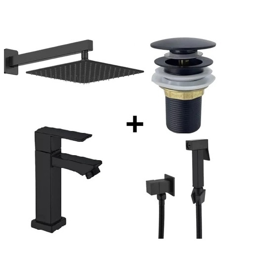 Kit Banheiro Luxo – Chuveiro + Torneira + Ducha Higiênica + Válvula Click Disponível nas cores Preto, Dourado e Prata, o Kit Banheiro Luxo é ideal para quem busca sofisticação, durabilidade e praticidade no banheiro ou lavabo. Produzido em metal de alta qualidade, oferece acabamento premium e excelente resistência à corrosão. ⚠ ATENÇÃO: Serve somente para furação de 4 cm ou maior. Válvula Click 1 1/4 Indicada para lavatórios com furo de 4 cm Sistema Click Inteligente (abre e fecha com um clique) Design moderno e funcional Material resistente e durável Ducha Higiênica Instalação: Parede Temperatura máxima: até 45 °C Pressão máxima: 15 M.C.A. Entrada de água: 1/2" Utilização: Banheiro ou salão de beleza Mangueira: Malha inox – 120 cm Gatilho: ABS (plástico) Registro e alavanca: Metal Mecanismo: 1/4 de volta (economia de água) Acompanha kit completo para instalação Torneira para Lavatório Material: Aço inox, antioxidante e anticorrosivo Acabamento premium em metal Abertura: Movimento lateral Bica baixa fixa Bitola: 1/2" Chuveiro Reto Largura da ducha: 20 cm Comprimento do braço: 40 cm Funcionamento: Apenas água fria Design moderno e elegante ✔ Alta durabilidade ✔ Design moderno ✔ Fácil instalação ✔ Ideal para banheiros e lavabos