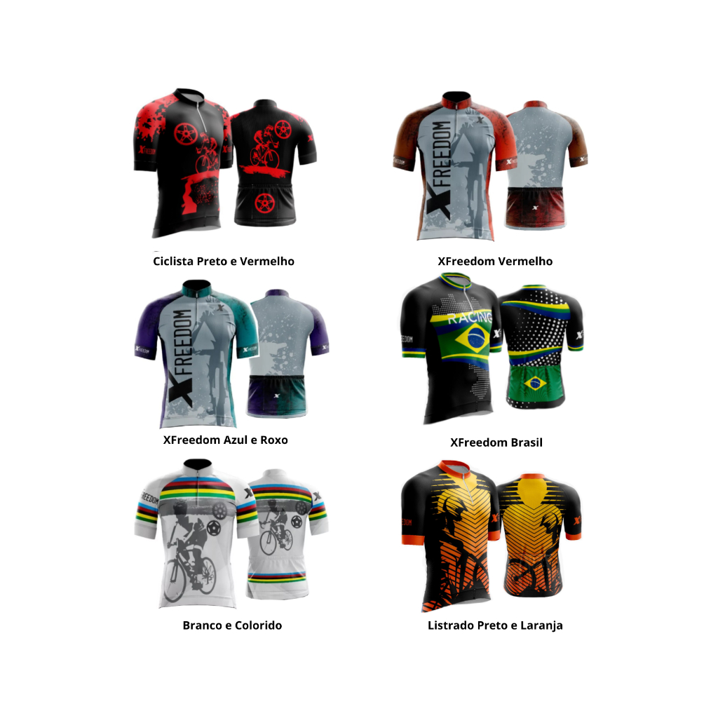 O KIT ACOMPANHA: - 01 CONJUNTO CAMISA E BERMUDA - 01 CAPACETE ATRIO MODELO C/ LED - 01 ÓCULOS PROTEÇÃO ESPELHADO - 01 PAR DE MANGUITOS ! CAPACETE TAMANHO ÚNICO PADRÃO ADULTO ! REFERÊNCIAS DE TAMANHOS: - P - 36/38 - M - 40 - G - 42 - GG - 44 - XGG- 46 DESCRIÇÃO CONJUNTO (CAMISA E BERMUDA) Conjunto ciclismo camisa e bermuda da marca XFreedom com proteção UV. Bermuda com forro interno costurado com proteção em gel. DESCRIÇÃO CAMISA Com a camisa XFREEDOM seu conforto e estilo estão garantidos, graças a confecção 100% em poliéster. Por sua composição, a camisa confere mais leveza e eficiência em garantir a absorção e liberação de umidade, mantendo excelente fluxo de ar. Com zíper de abertura com 15 cm, e em conjunto com o sistema de controle de umidade, a camisa garante maior conforto, mesmo em dias mais quentes. O sublimado da camisa XFREEDOM garante que seu pedal permaneça com as cores vivas e por muito mais tempo, sem desbotar, e com a proteção UV mesmo nos dias mais quentes seu pedal se torna mais seguro e prazeroso. A camisa XFREEDOM possui três bolsos traseiros, que permitem levar pequenos objetos de maneira mais prática e fácil, e graças ao elástico que confere segurança em terrenos com maiores trepidações, e praticidade para pegá-los sem descer dos pedais. Especificações técnica da camisa: - UV - garante mais proteção contra os raios solares (*Não dispensa o uso de filtros, protetores ou bloqueadores solares); - Controle de umidade - absorção e liberação rápida da umidade garantem mais conforto longe do excesso de suor ou após chuvas; - Zíper frontal de 15 centímetros - maior praticidade na colocação e retirada da camisa, além de auxiliar na refrigeração; - Fabricada 100% em poliéster - muito mais leveza e permite muito mais respirabilidade para a pele. DESCRIÇÃO BERMUDA - Bermuda ciclismo com proteção em gel; - Forro interno costurado; - 02 bolsos laterais. Bermuda Sport para ciclismo XFREEDOM com design exclusivo. Tecnologia que garante a troca térmica, dispersão do calor e absorção do suor. Tecido de poliamida de alta compressão para melhor performance e recuperação muscular. Forro multi densidade de alta pressão contra o selim, garantindo o conforto e proteção durante a prática do esporte. DESCRIÇÃO CAPACETE O capacete com led une segurança e conforto, sendo um equipamento ideal para seus passeios de bike/bicicleta e atividades em Montain Bike's. Este modelo conta com 19 furos que vai proporcionar melhor ventilação, além disso contêm acolchoamento na parte interna para melhor conforto e estabilidade, possui viseira removível e luz de LED. Ele tem um design bem estiloso! Especificações técnicas: - UNISSEX - ideal para todos os gêneros; - 19 Furos para melhor ventilação; - Acolchoados removíveis; - Viseira removível; - Led 3 Fases: Aceso, pisca rápido e pisca lento. Informações técnicas: - Dimensões aproximadas: 37,5 x 38 x 8 cm; - Composição do Material: PVC EPS; - Peso: 285g. DESCRIÇÃO ÓCULOS DE CICLISMO ESPORTIVO ESPELHADO Especificações técnicas: - Produto novo - Peso: 29 gramas - Gênero: Unissex - Comprimento Frontal: 15 cm - Hastes: 12,5 cm - Lentes Amplas: 7 x 4,5 cm - Armação e Hastes em policarbonato - Armação Preta e Hastes na cor Preta com emborrachamento Vermelho Benefícios: - Modelo ultra leve com apenas 30 gramas; - Armação Moderna, Esportiva e Resistente; - Lentes com proteção categoria 3 UV 400 protegendo contra os raios solares; - Evitam contato de insetos e corpos estranhos; - Para quem faz trilhas, protegem os olhos no caso de choques com galhos e obstáculos que possam surgir no percurso; - Previnem o ressecamento dos olhos pelo vento e o consequente lacrimejamento, que pode ser muito incômodo para o ciclista; - Garantem a ventilação adequada, evitando que as lentes fiquem embaçadas ou que o vento resseque os olhos. DESCRIÇÃO MANGUITO PRETO CICLISMO FPS 50 Para você que procura um manguito com excelente custo benefício, para a prática de diversos esportes, inclusive o ciclismo, esse é o manguito indicado para você O manguito é antitérmico e não esquenta, além de ter proteção solar UVA e UVB Fator 50, possui malha maleável com lycra que não limita os movimentos do braço. É muito confortável, ideal para ciclistas, motociclistas, motoristas e esportes em geral.
