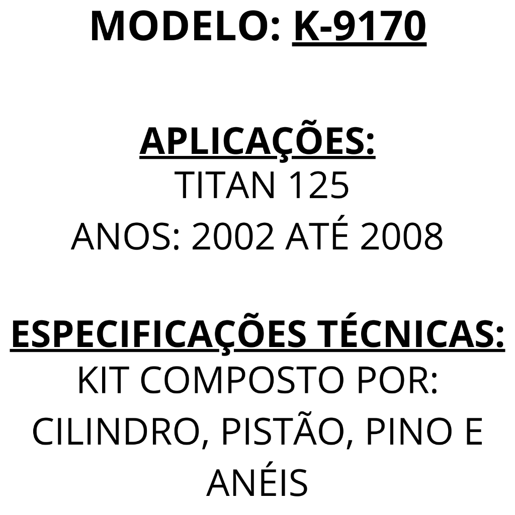 Kit Cilindro Motor Camisa Pistão e Anéis Honda Titan 125 Fan 125 Bros 125 2002 A 2008
