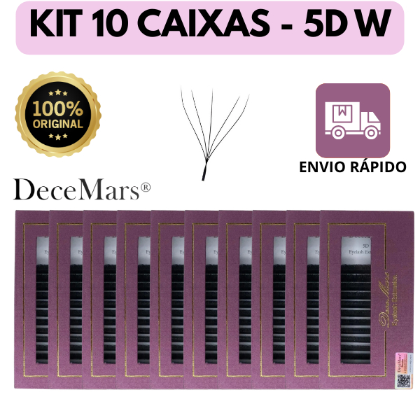 Kit Cilios 10 Caixas 5D W Decemars Volume Tecnologico Extensão de Cílios Alongamento Fio a fio Envio