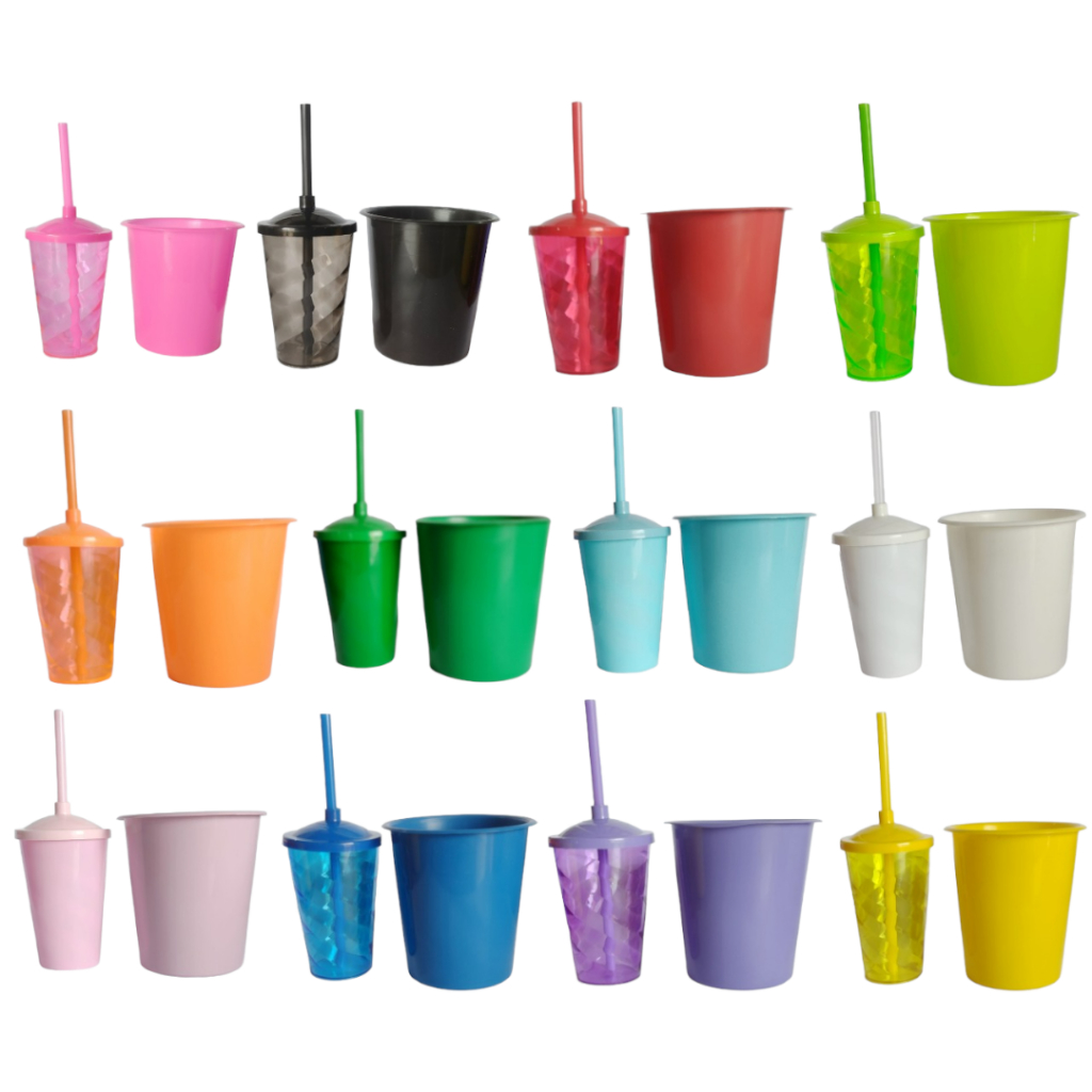 Kit Cinema 10 Baldinho De Pipoca 1 litro + 10 Copo Twister 400ML Com Tampa e Canudo - Lembrancinha