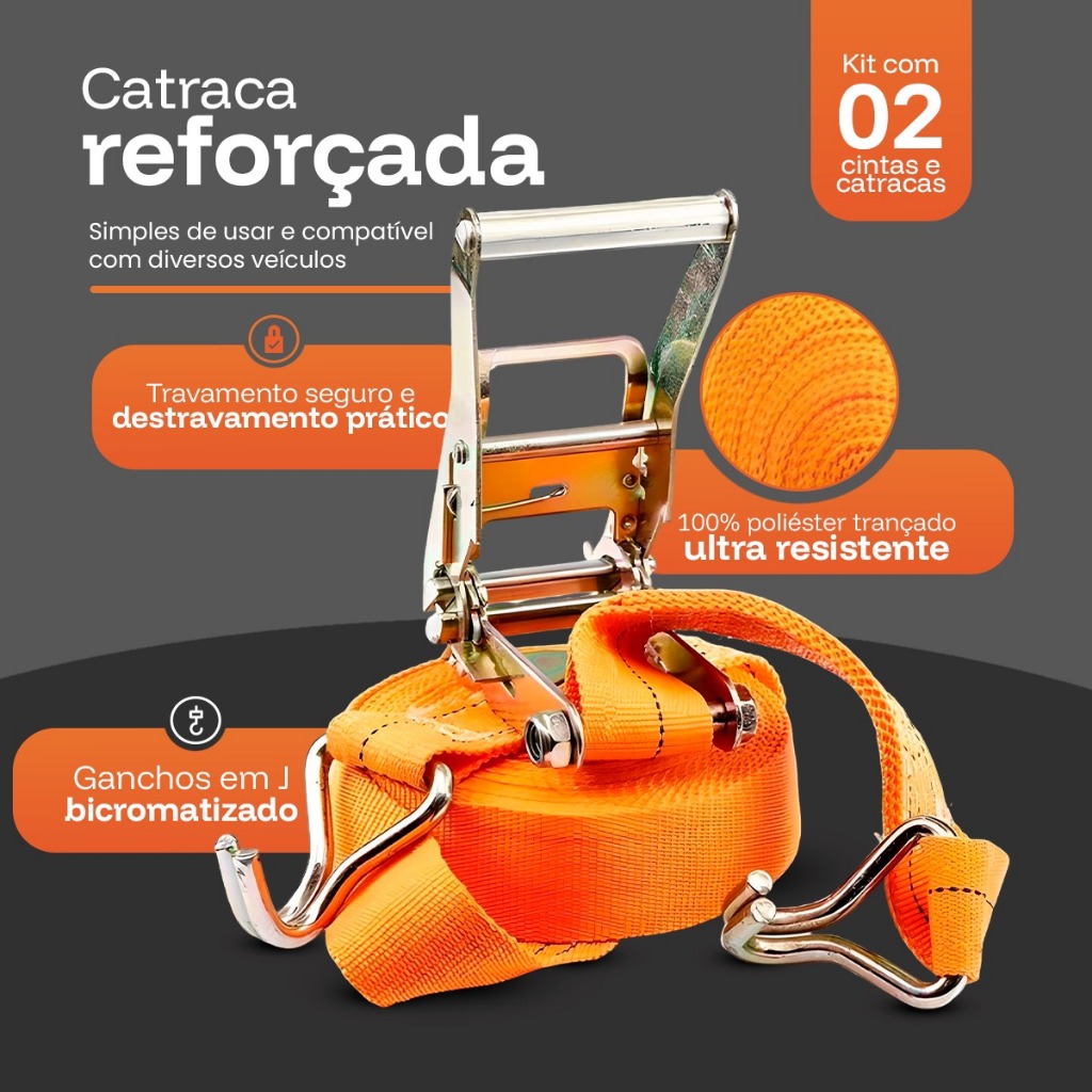 Kit Cinta Catraca 1,5ton Amarração Carga Caminhão Carreta Laranja 2x ou 4x