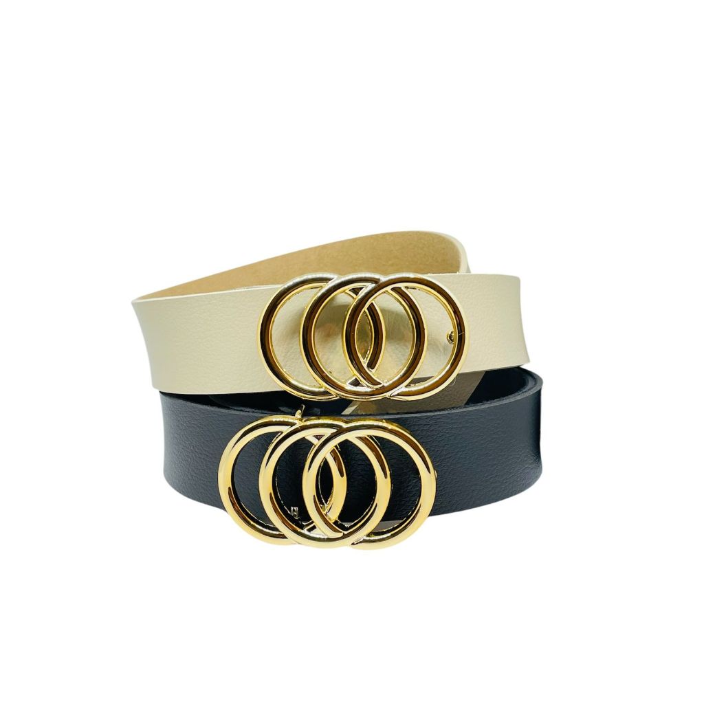 Kit Cinto Feminino 2 Peças Argola Tripla Fivela Dourada - Moda Rute 3 cm de Largura