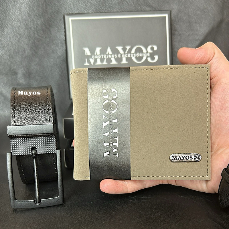 Kit Cinto Masculino 125 CM + Carteira Masculina Couro P.U MAYOS (COM CAIXINHA).