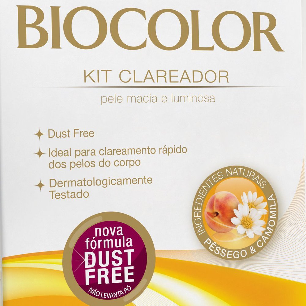 O Kit Contém: 1 Sachê de Descolorante Rápido Biocolor 20g 1 Frasco com Biocolor Água Oxigenada Cremosa 12 vol 45 ml 1 Tigela Plástica transparente descartável Oval 1 Espátula para mistura. Kit Clareador Biocolor Pêssego e Camomila, é ideal para descoloração dos pêlos do corpo. Promove uma descoloração uniforme deixando a pele macia, luminosa e com um perfume de pêssego. Contém tudo o que é necessário para permitir ao consumidor descolorir seus pêlos de forma prática e rápida em casa. Modo de usar: Aplique a massa sobre os pelos do corpo que quiser clarear. Deixe agir de 10 a 15 minutos, observando o clareamento. É importante respeitar o tempo máximo de clareamento para obter um resultado incrível com total segurança. Sobre a marca: Presente há cerca de 60 anos no mercado de coloração capilar, Biocolor foi a primeira marca da categoria com alcance nacional no Brasil. É reconhecida pelos consumidores como ótima proposta para quem busca opção simples e prática no momento de colorir o cabelo em casa.