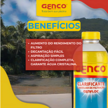 ⭐ APRESENTAÇÃO O Kit Cloro Genco 3 em 1 + Clarificante é a combinação ideal para manter sua piscina limpa, transparente e bem tratada no dia a dia. Uma solução prática, rápida e eficiente para quem quer resultado garantido com produtos de qualidade Genco. 💧 BENEFÍCIOS ✔ Mantém a água cristalina e protegida ✔ Auxilia na remoção de impurezas e turbidez ✔ Produto 3 em 1: age na limpeza, conservação e desempenho ✔ Clarificante potencializa a transparência da água ✔ Fácil aplicação, ideal para rotina de tratamento 🏊 USABILIDADE O Cloro Genco 3 em 1 faz a manutenção diária da piscina. O Clarificante ajuda a deixar a água mais transparente, facilitando a decantação de partículas. Utilize JUNTOS na rotina semanal para manter a água limpa, clara e com ótimo aspecto. Pode ser usado em piscinas de fibra, alvenaria e vinil. 📦 CARACTERÍSTICAS TÉCNICAS Marca: Genco Itens inclusos: • 1x Cloro Granulado Genco 3 em 1 ( 1 kg ) • 1x Clarificante Genco ( 1L ) Uso: Tratamento e manutenção da água da piscina Indicação: Piscinas domésticas e comerciais ❓ PERGUNTAS FREQUENTES (FAQ) 1) Posso usar os dois produtos no mesmo dia? Sim! Aplicar o clarificante após o cloro melhora muito o resultado da água. 2) Esse kit serve para piscina de vinil ou fibra? Serve para todos os tipos de piscina. 3) O clarificante substitui o cloro? Não. O cloro faz a manutenção diária e o clarificante melhora a transparência da água. 4) Pode usar com a piscina cheia de gente? Aplique sempre com a piscina sem uso. Após o tratamento, aguarde o tempo indicado no rótulo. 5) Esse kit resolve água turva? Sim, o clarificante ajuda a eliminar turbidez e o cloro mantém a água limpa e equilibrada. 💡 DICA DO VENDEDOR Para um resultado ainda melhor, aplique o clarificante com o filtro desligado e deixe agir por algumas horas. No dia seguinte, aspire o fundo da piscina direto para o esgoto para remover toda a sujeira decantada. Garanta já o Kit Cloro + Clarificante Genco e deixe sua piscina sempre limpa, brilhante e convidativa. 👉 Clique em comprar e receba produtos originais Genco com envio rápido!