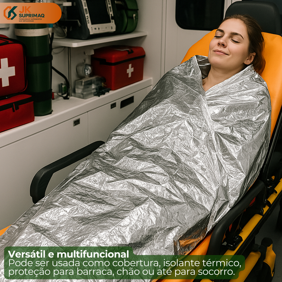 Kit Cobertor Manta Emergência Resgate Térmica Aluminizado Camping Primeiros Socorros Acampamento