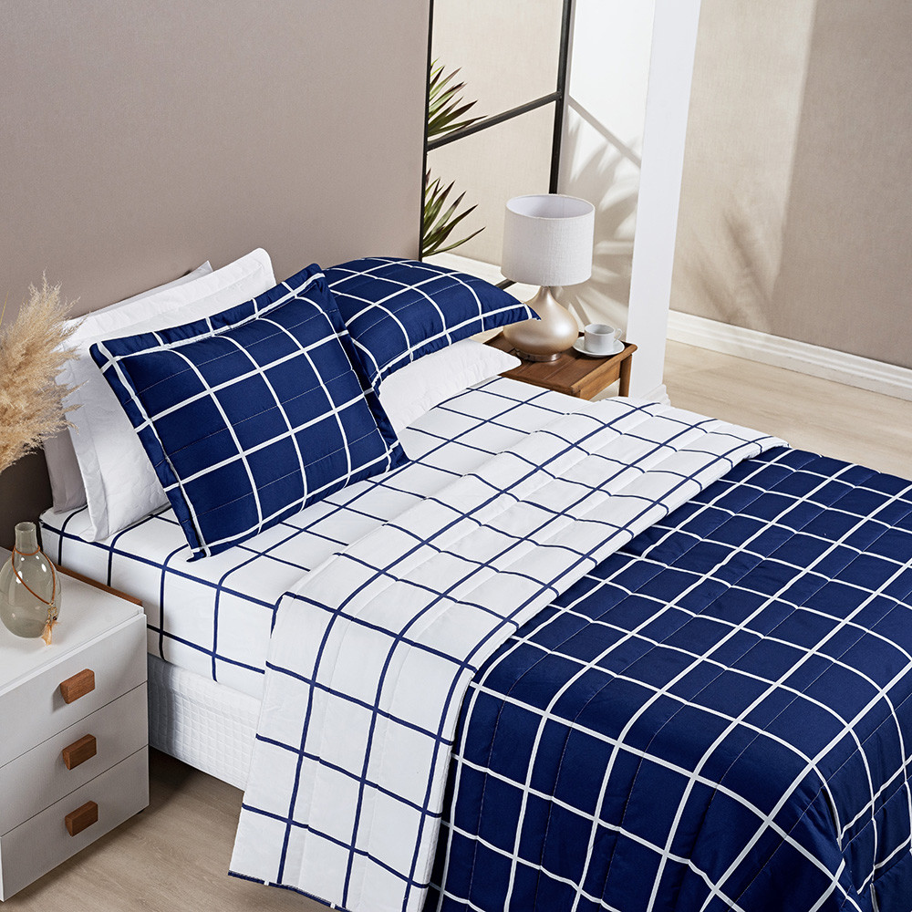 Kit Cobre Leito 3 Peças Colcha Dupla Face Matelado Percal 200 Fios Solteiro\Casal\Queen\King Austin