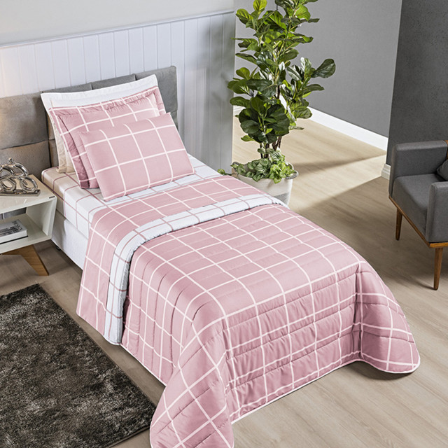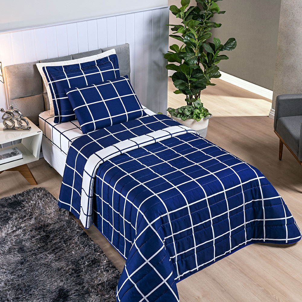 Kit Cobre Leito Austin Solteiro 2 Peças Dupla Face 200 Fios Percal Matelado Com Porta Travesseiro