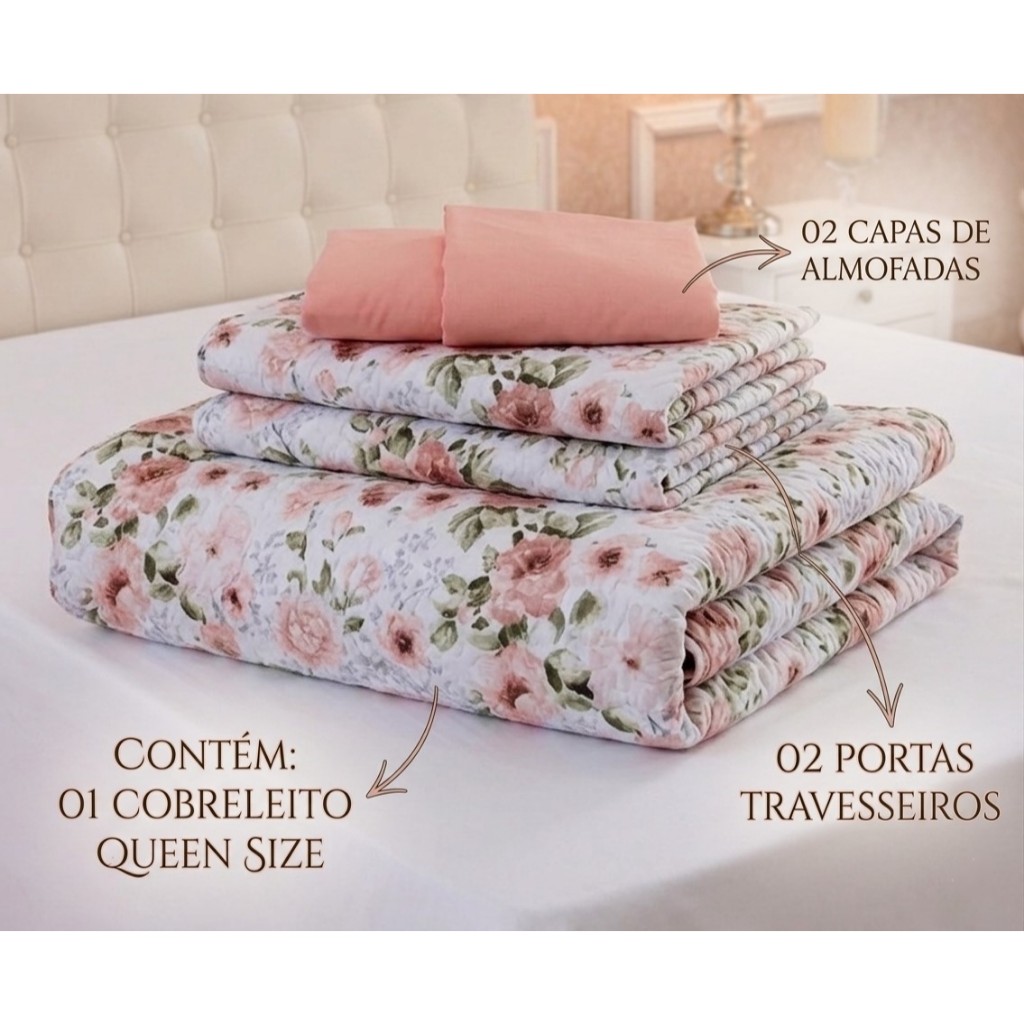 | KIT Cobre Leito Colcha Belize Luxo Premium - Queen Size - 05 Peças - este produto | R$ 116,89 | 35% | 4.8/5 | 6 |