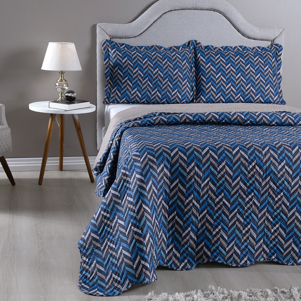 Kit Cobre Leito Colcha Casal 3 Peças Boutis Estampada Dupla Face Porta Travesseiro Aba Americana
