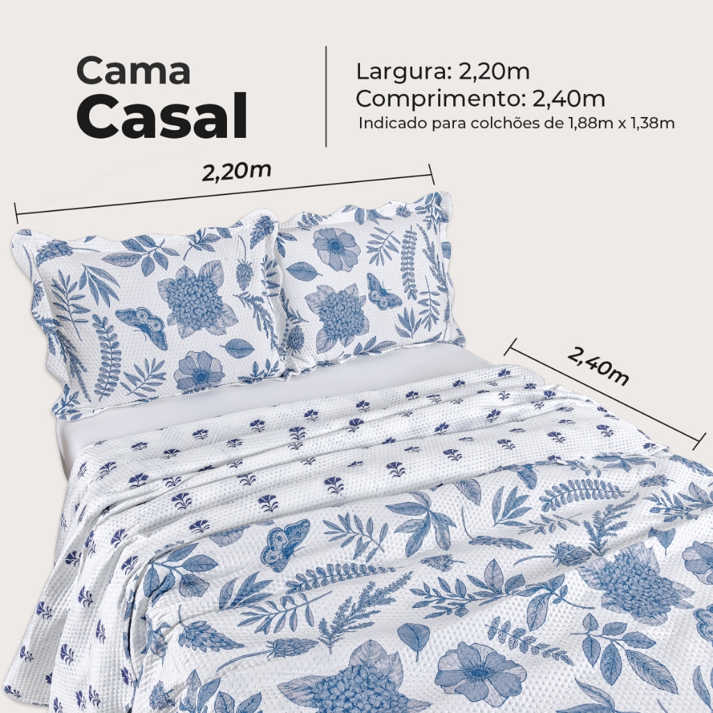 Kit Cobre Leito Colcha Casal Bouti 3 Peças Dupla Face Estampada Porta Travesseiro Aba Americana
