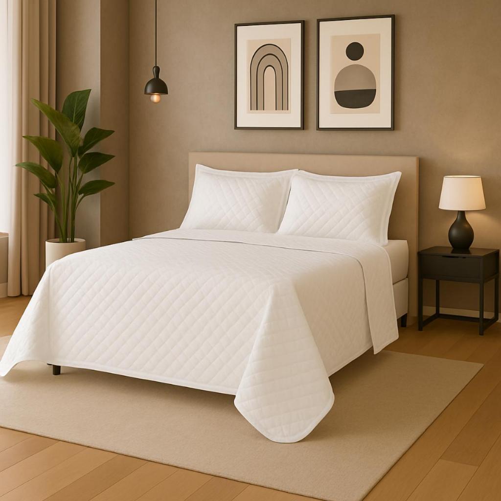 Transforme sua cama em um refúgio de conforto e elegânciaCOBRE LEITO MATELADO 3 PEÇAS CASAL PADRÃO O Cobre Leito é a escolha perfeita para quem busca sofistação e praticidade no dia dia. Produzido em 100% Poliéster, oferece toque macio, resistência e fácil manutenção, garantindo beleza e durabilidade por muito mais tempo -CONTÉM: 01 Cobre Leito Matelado Casal Padrão 2,00 x 2,20 02 Porta travesseiro 50 x 70cm BENEFICIOS uqe encantam: Design matelado que proporciona charme e modernidade ao quarto Tecido leve, de secagem rápida e que não amassa com facilidade Ideal para uso diário ou para receber visitas com estilo Fácil de combinar com diferente estilos de decoração Com esse conjunto, sua cama ganhará um visual impecável, aconchegante e acolhedor, perfeito para noites tranquilas