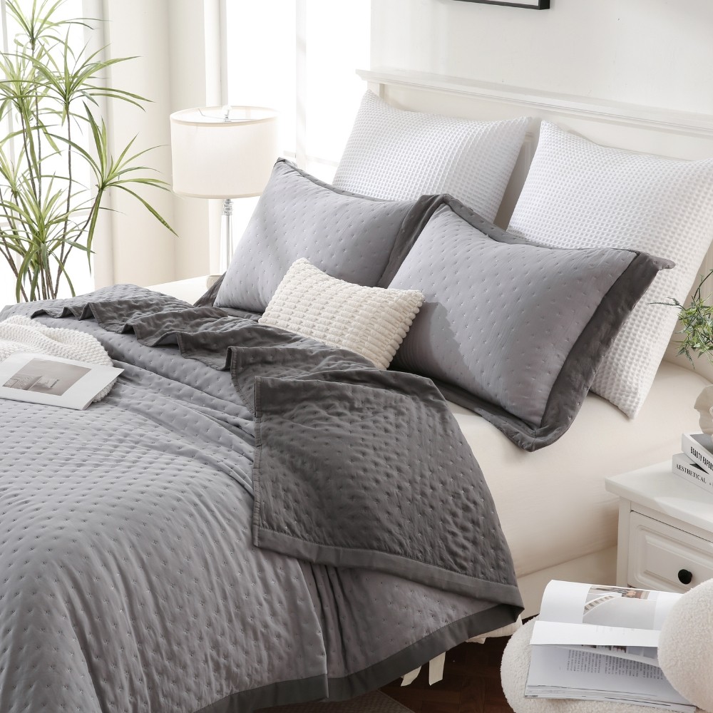 Kit Cobre Leito Colcha Casal Paris Bicolor Percal 300 fios