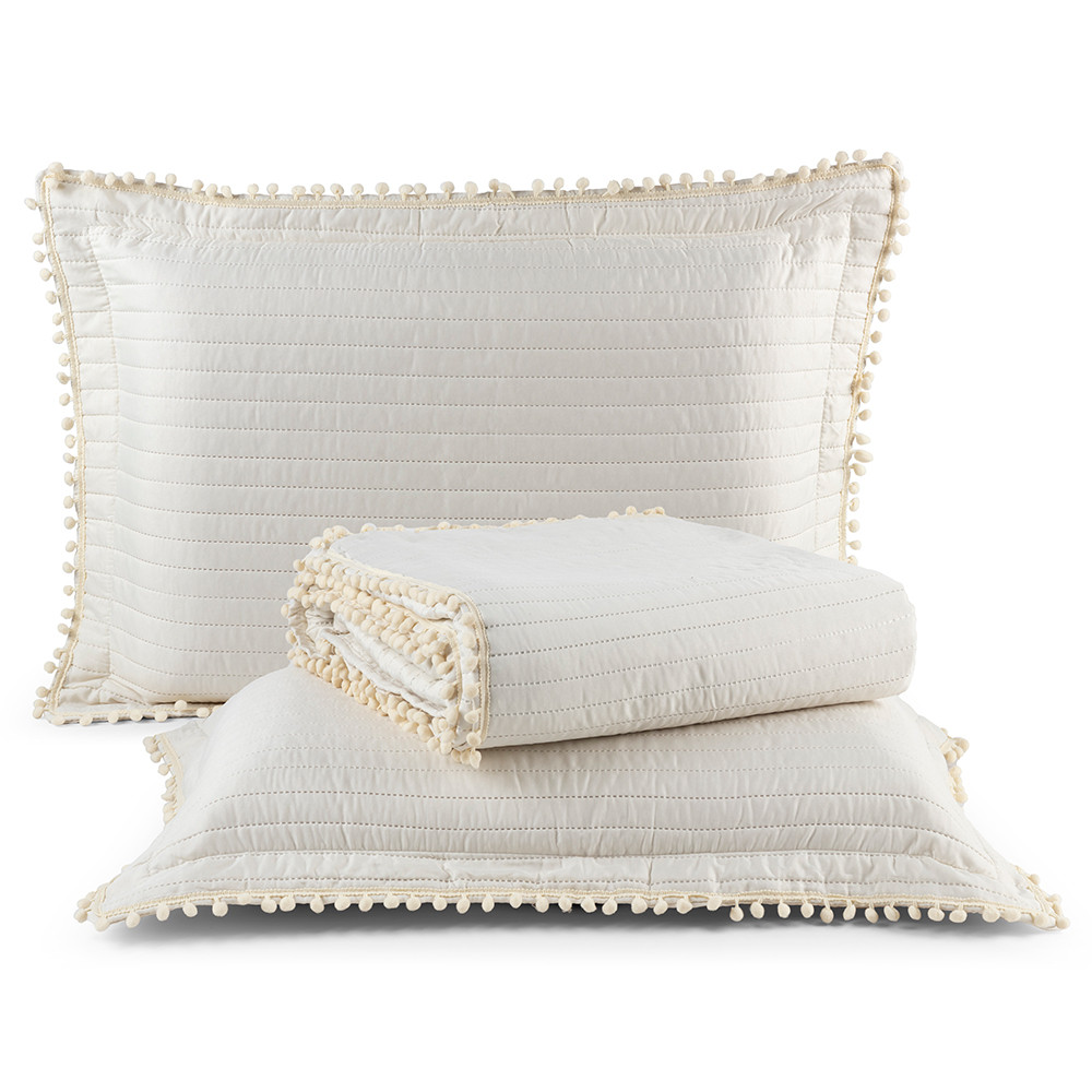 Kit Cobre Leito Colcha Queen 3 Peças Matelado PomPom 300 Fios Com Porta Travesseiro