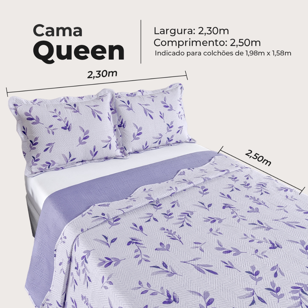 SOBRE O PRODUTO: A Colcha Queen Bouti Dupla Face da marca Vianelli é perfeita para quem busca praticidade e estilo na hora de decorar o quarto. Com 2.40m de comprimento e 2.60m de largura, é adequada para colchões de casal. Feita em poliéster, é reversível, permitindo variar a decoração com facilidade. Além disso, é adequada para máquina de lavar roupa, facilitando a limpeza e manutenção do produto. Com capas de travesseiro inclusas, é uma opção completa para renovar o ambiente de forma rápida e charmosa. ------------------------------------------------------------ O QUE VAI NA EMBALAGEM: 1 Colcha 2,40m x 2,60m 2 Porta travesseiros 70cm x 50cm Composição: Tecido: 100% Poliéster ------------------------------------------------------------ FICHA TÉCNICA: Tamanho: Queen Tipo: Colcha QTD De Peças: 03 Composição Do Tecido: 100% Poliéster Composição Do Enchimento: 100% Poliéster Fabricante: Vianelli Enxovais Garantia: 01 Mês ------------------------------------------------------------ " PRODUTO EXCLUSIVO - SOMOS FABRICANTES" "POSTAREMOS SEU PEDIDO ASSIM QUE EFETUADO A COMPRA. TEMOS EM ESTOQUE TODOS OS PRODUTOS ANUNCIADOS!” VERIFIQUE SE SEU ENDEREÇO ESTÁ ATUALIZADO.
