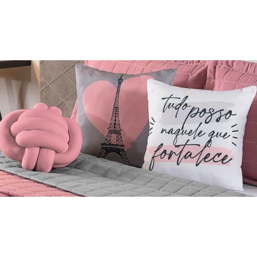 kit Cobre Leito Colcha Queen Dupla Face Paris 8 Peças Com Almofadas Decorativas